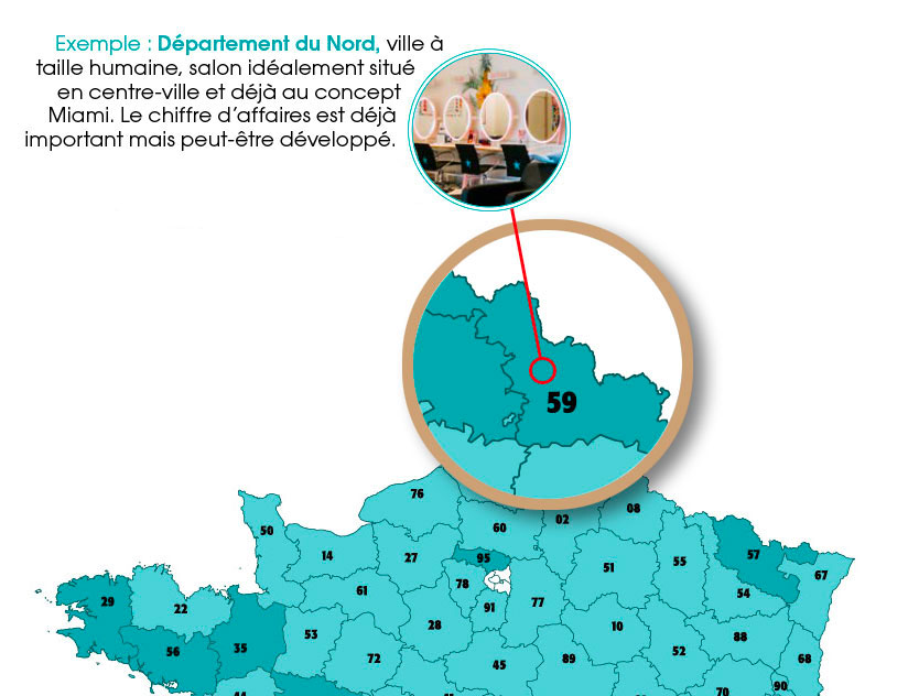 • la liste des zones prioritaires de développement du Groupe VOG ; zones à fort potentiel pour l’implantation d’un salon de coiffure